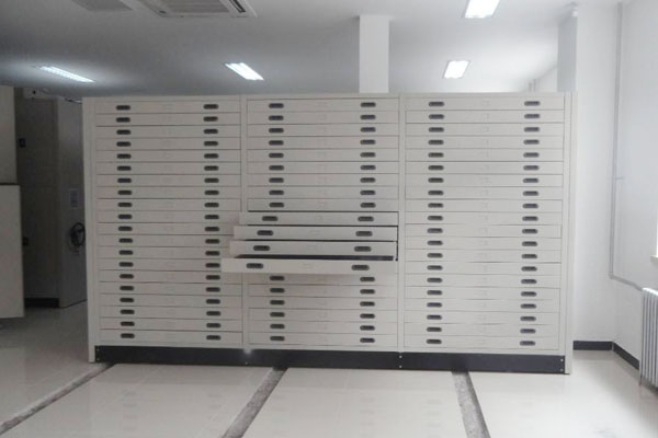底圖密集架是企事業(yè)單位,檔案館、圖書館存放各類圖紙的專用裝具。采用設(shè)有特別導(dǎo)軌的滾結(jié)構(gòu)抽屜,存取靈活、輕便;抽屜拉出時能始終保持水平狀態(tài),適用于各類型底圖平放。